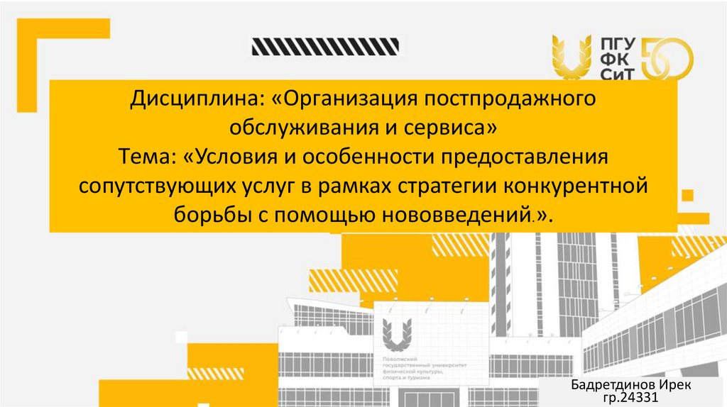 Дисциплина: «Организация постпродажногообслуживания и сервиса»