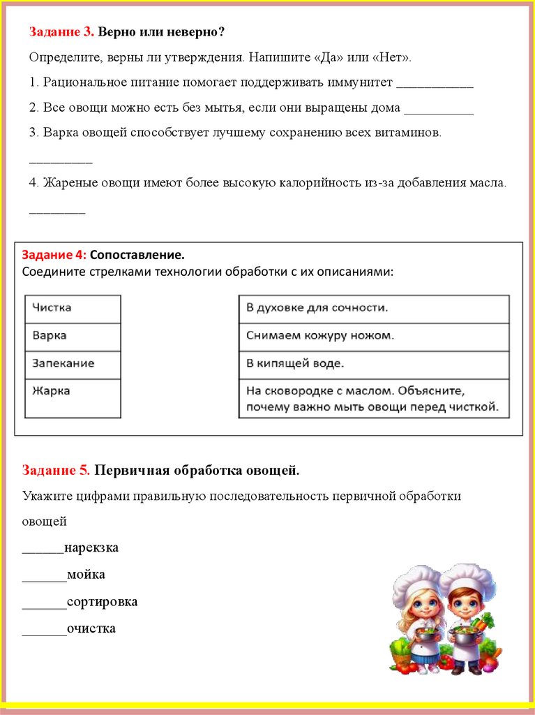 Задание 5. Первичная обработка овощей.