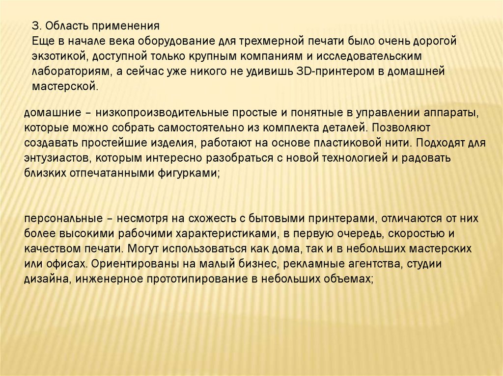 3. Область примененияЕще в начале века оборудование для трехмерной печати было очень дорогой