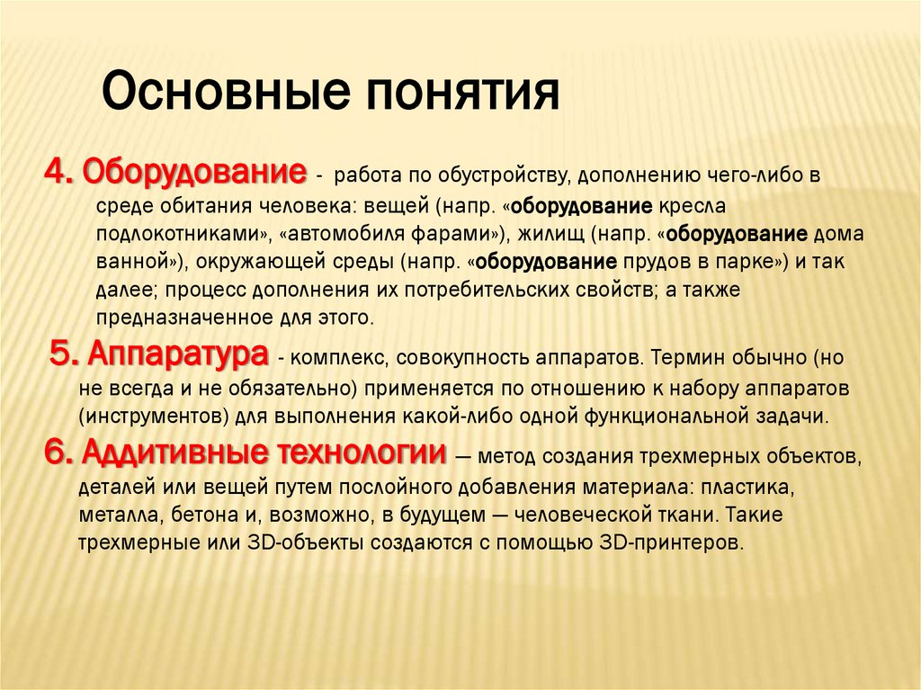 Основные понятия4. Оборудование - работа по обустройству, дополнению чего-либо в