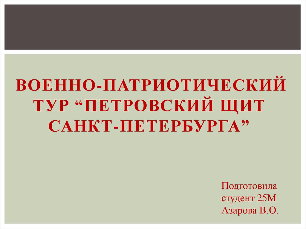 1. Военно-Патриотический Тур “Петровский Щит Санкт-Петербурга”
