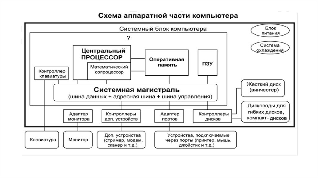 1.Составьте схему системного блока (можно нарисовать от руки) с указанием основных компонентов: