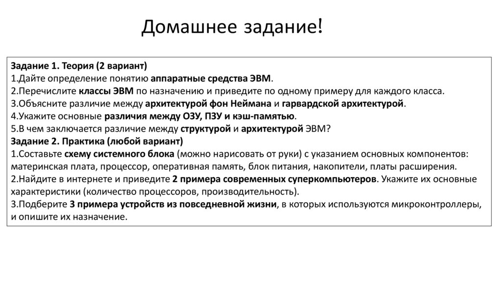 Домашнее задание!Задание 1. Теория (2 вариант)