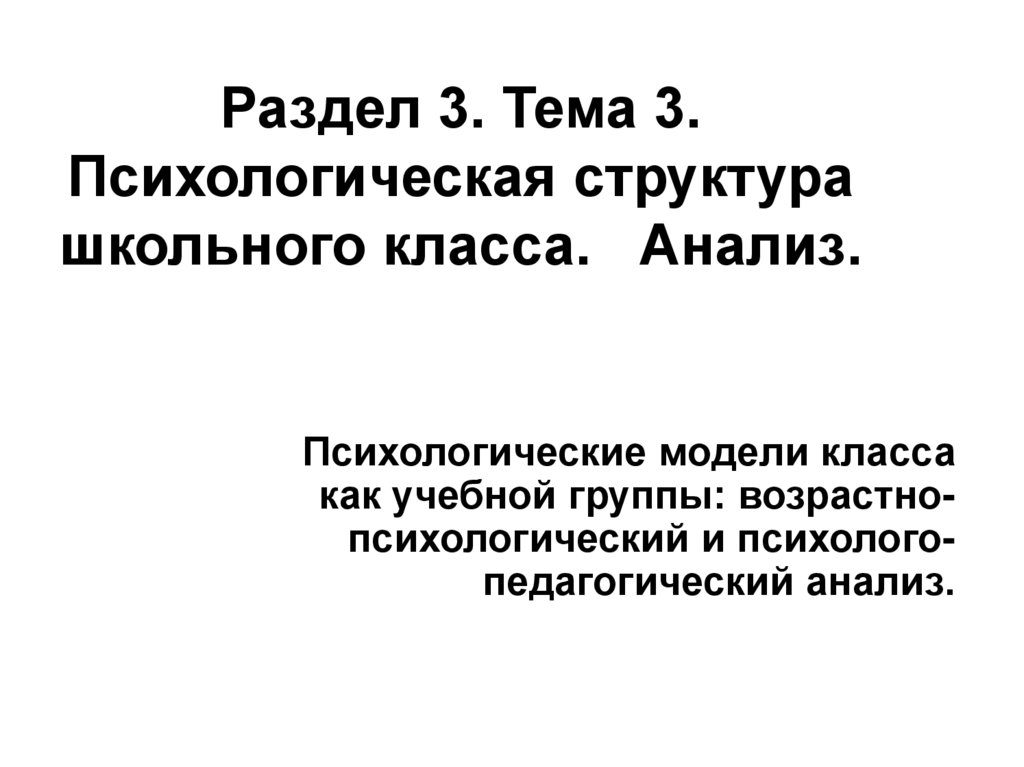 1. Раздел 3. Тема 3. Психологическая структура школьного класса. Анализ.