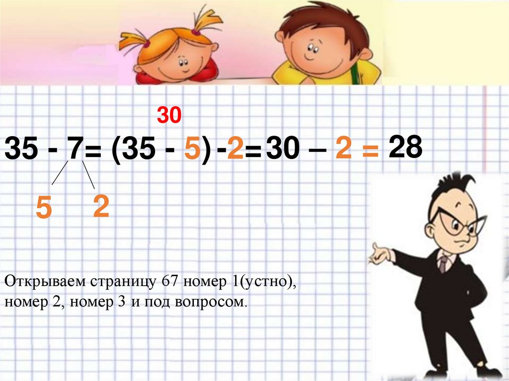 3035 - 7= (35 - 5) -2= 30 – 2 = 28