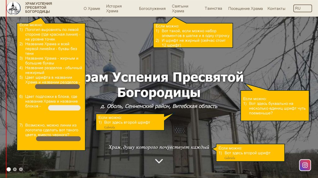 3) Название Храма – жирным и