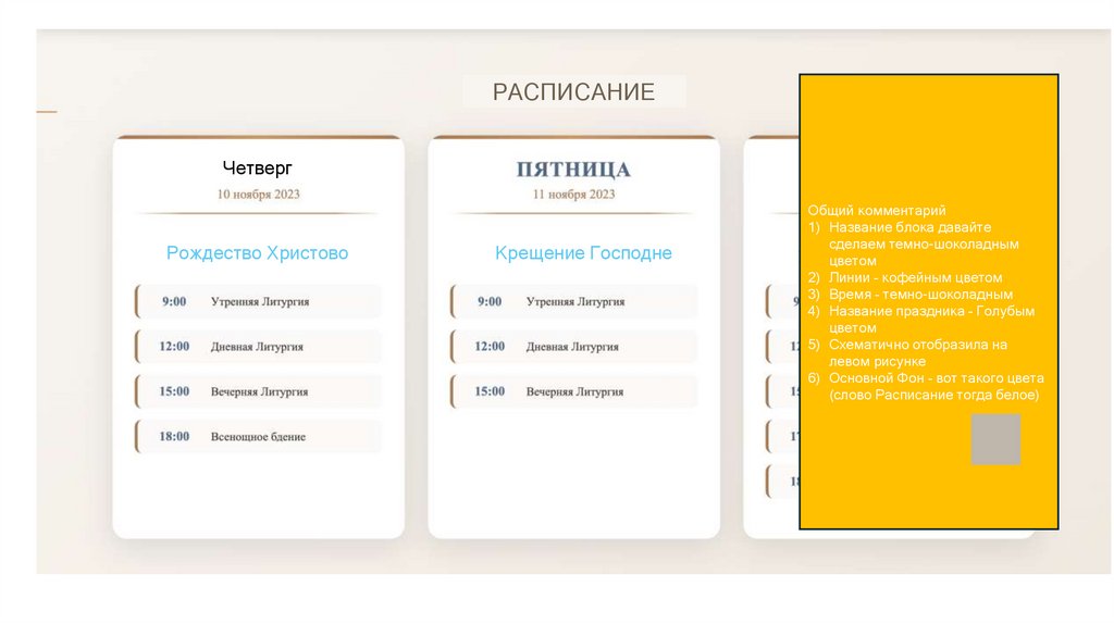 1) Предложение по немного другим цветам на следующем слайде (этот блок самый строгий, тут важно не переборщить
