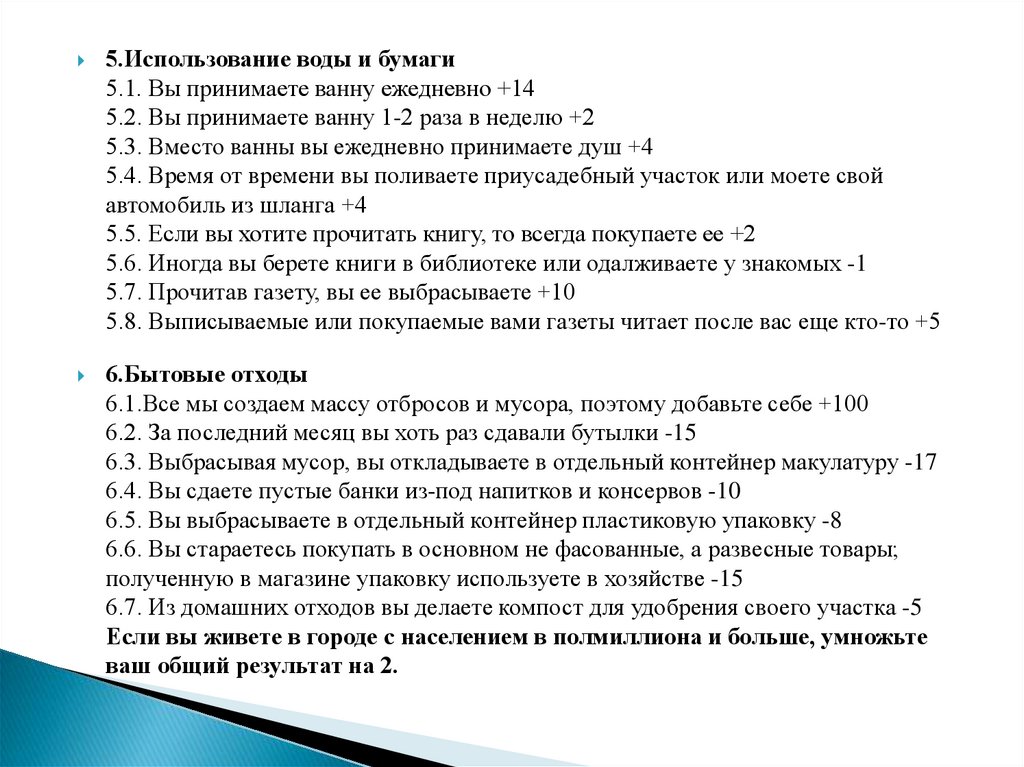 5.Использование воды и бумаги5.1. Вы принимаете ванну ежедневно +14