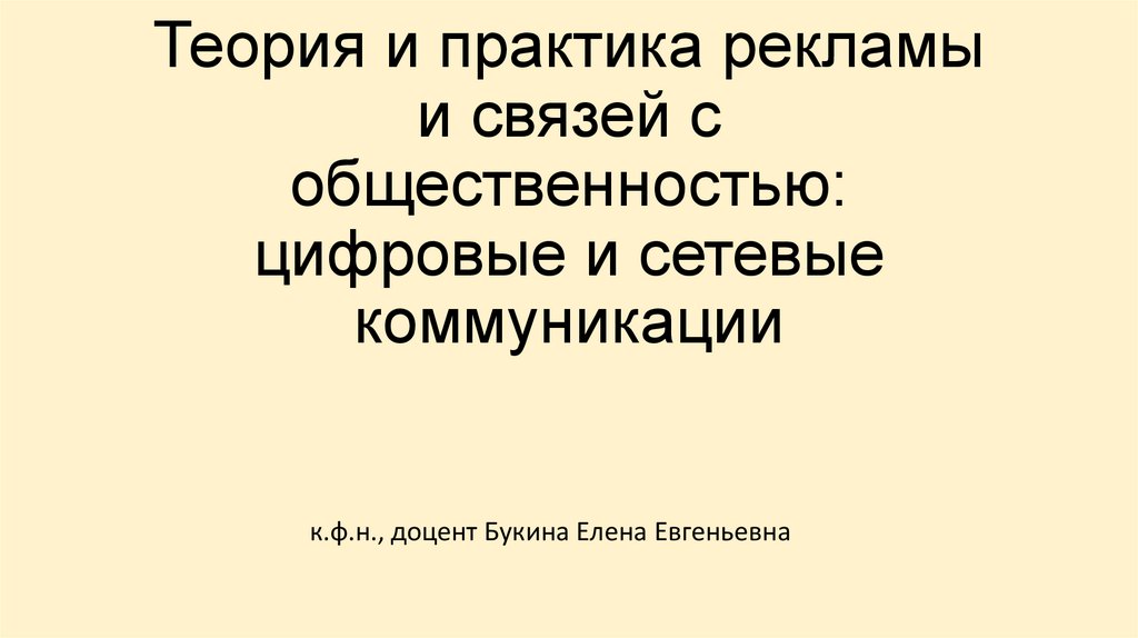 1. Теория и практика рекламы и связей с общественностью: цифровые и сетевые коммуникации