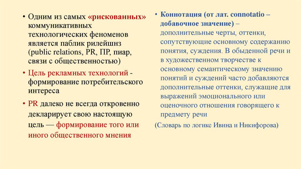 • Словосочетания «паблик рилейшнз» и «связи с общественностью»
