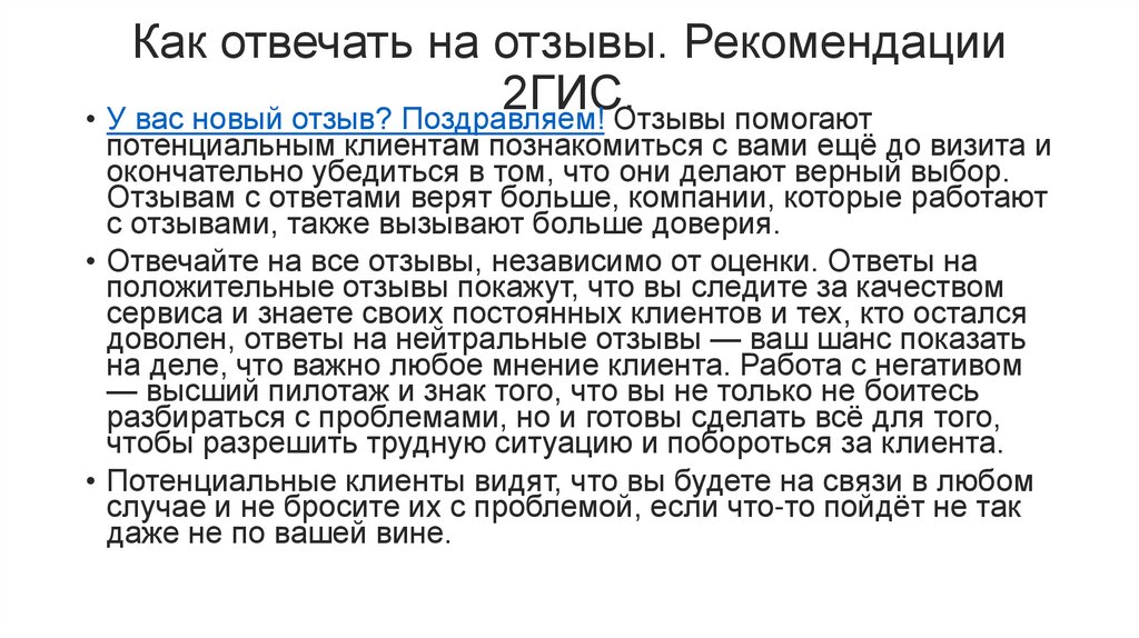 1. Как отвечать на отзывы. Рекомендации 2ГИС.