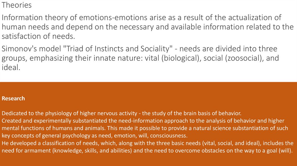 TheoriesInformation theory of emotions-emotions arise as a result of the actualization of
