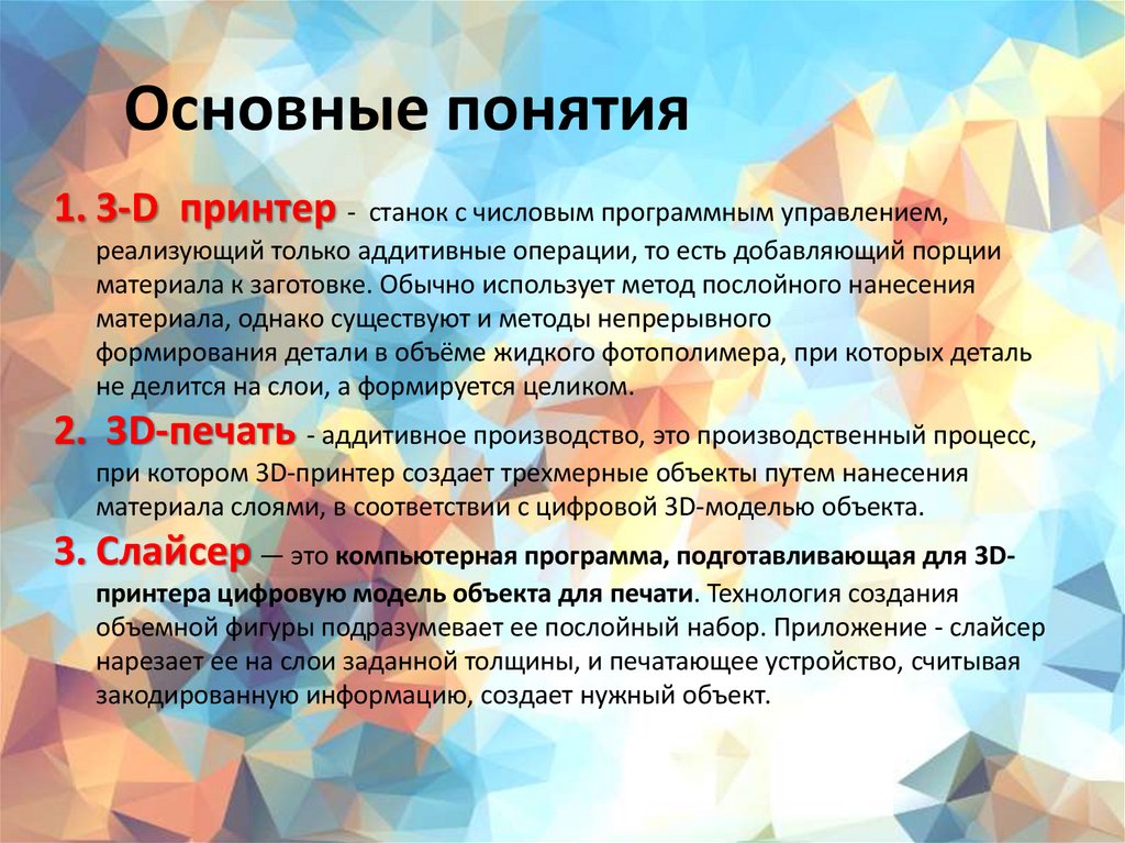 Основные понятия1. 3-D принтер - станок с числовым программным управлением,