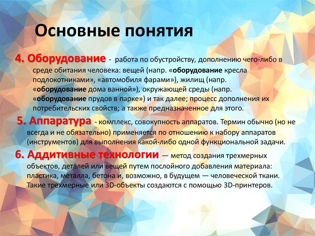 Основные понятия4. Оборудование - работа по обустройству, дополнению чего-либо в