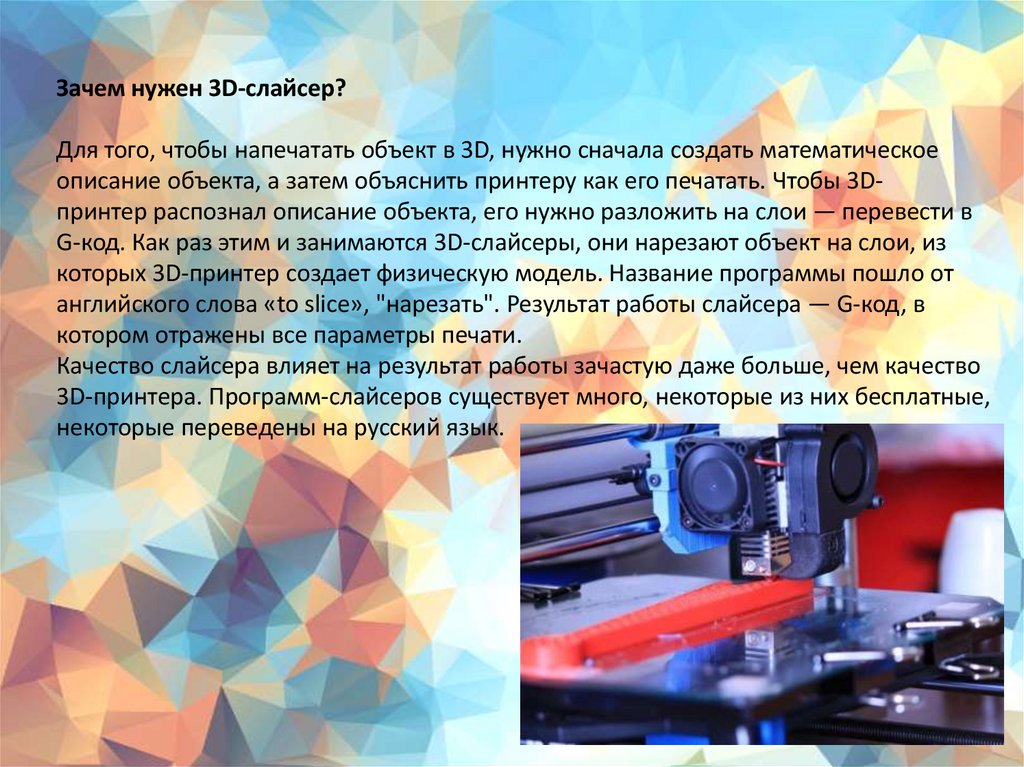 3. Слайсер — это компьютерная программа, подготавливающая для 3Dпринтера цифровую модель объекта для печати. Технология создания