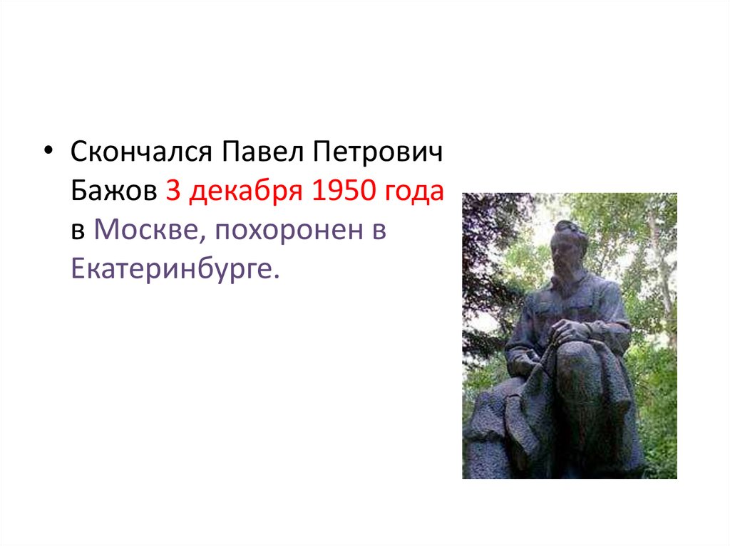 • Скончался Павел ПетровичБажов 3 декабря 1950 года