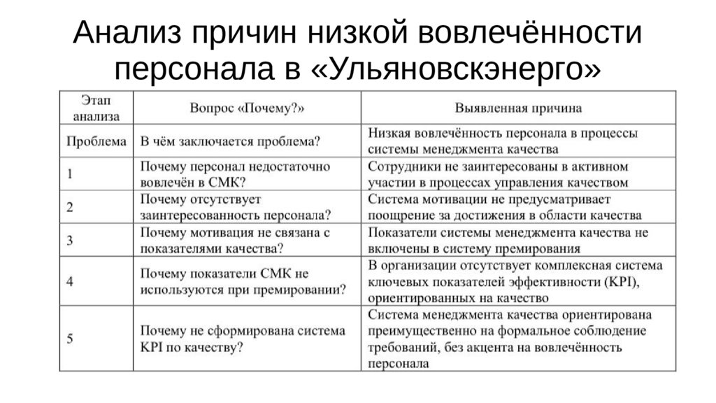 Анализ причин низкой вовлечённостиперсонала в «Ульяновскэнерго»