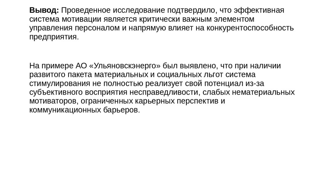 Вывод: Проведенное исследование подтвердило, что эффективнаясистема мотивации является критически важным элементом