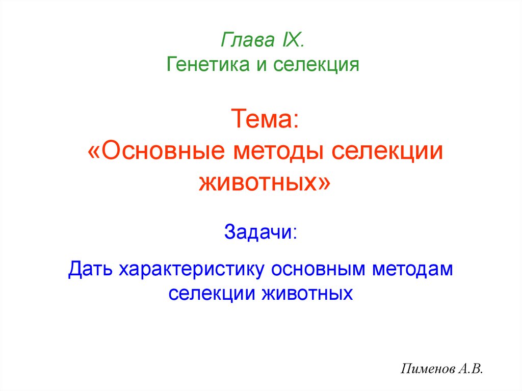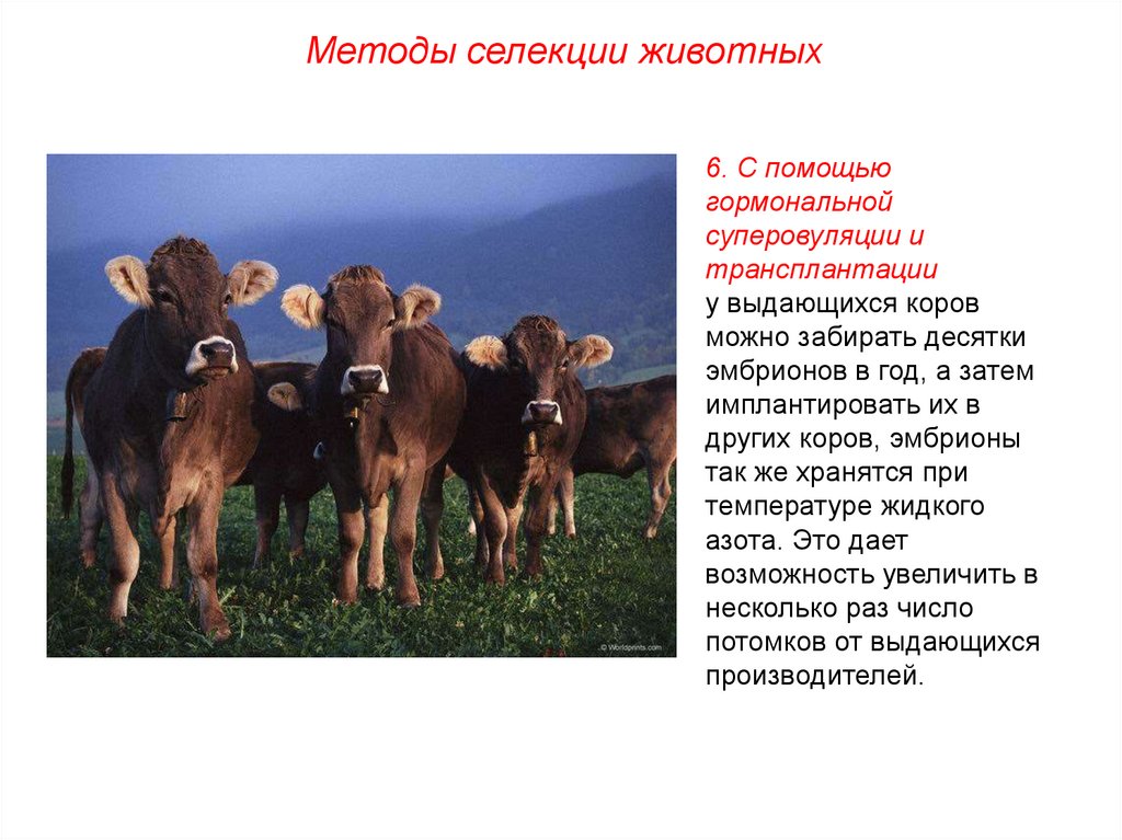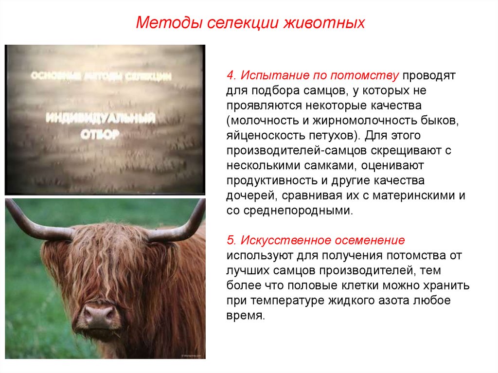 Методы селекции животныхВ селекции животных, по сравнению с селекцией растений, есть ряд
