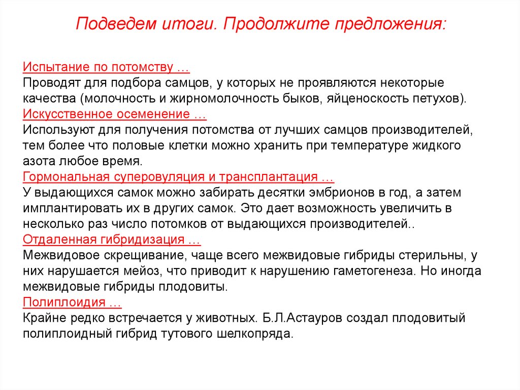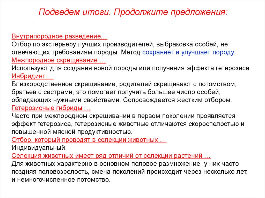 Подведем итоги. Продолжите предложения:Внутрипородное разведение…