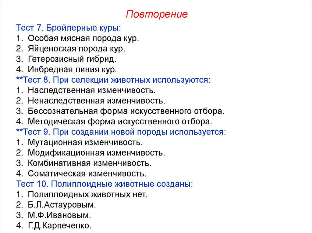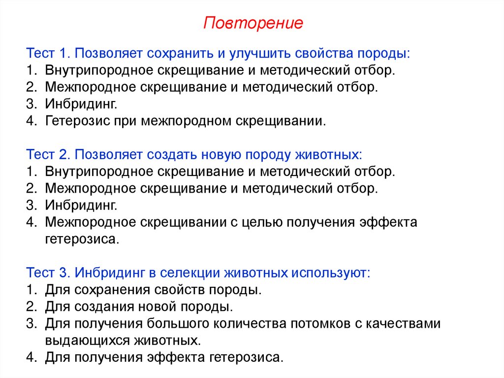 ПовторениеТест 1. Позволяет сохранить и улучшить свойства породы: