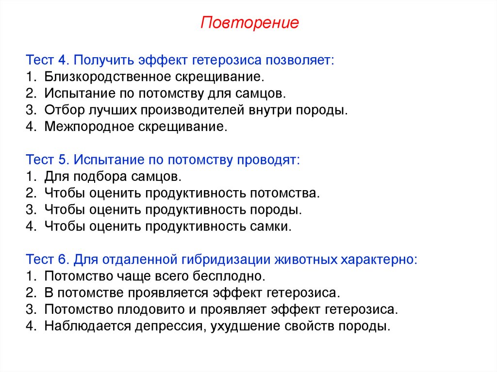 ПовторениеТест 4. Получить эффект гетерозиса позволяет: