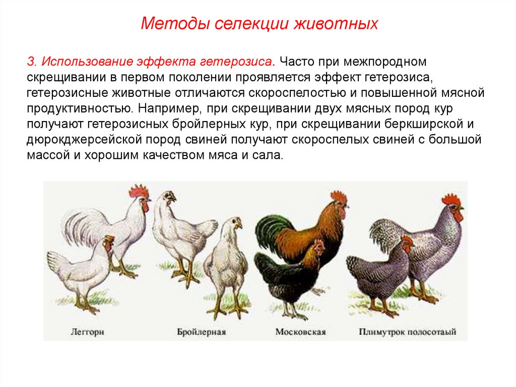 продуктивностью. Например, при скрещивании двух мясных пород кур