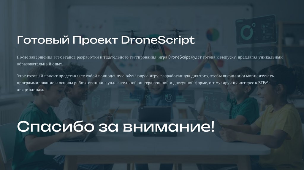Готовый Проект DroneScriptПосле завершения всех этапов разработки и тщательного тестирования, игра DroneScript будет готова к выпуску, предлагая уникальный