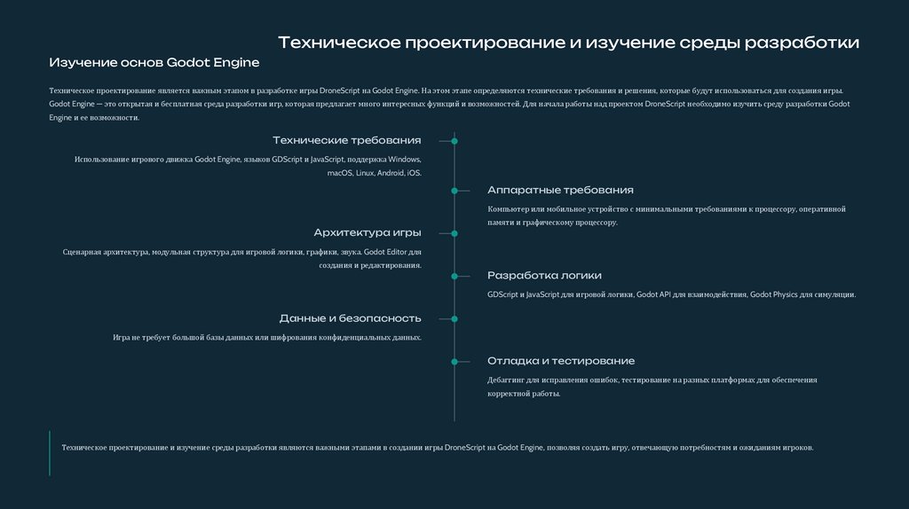 Техническое проектирование и изучение среды разработки являются важными этапами в создании игры DroneScript на Godot Engine, позволяя создать игру, отвечающую потребностям и ожиданиям игроков.