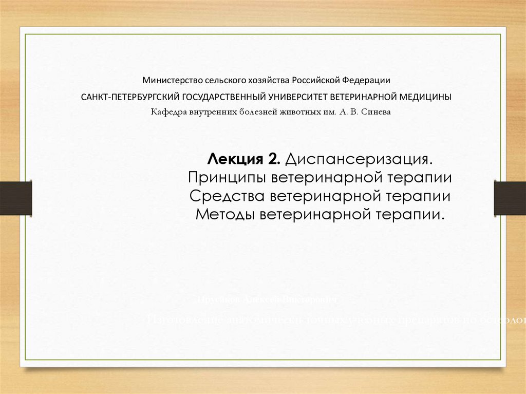 Министерство сельского хозяйства Российской ФедерацииСАНКТ-ПЕТЕРБУРГСКИЙ ГОСУДАРСТВЕННЫЙ УНИВЕРСИТЕТ ВЕТЕРИНАРНОЙ МЕДИЦИНЫ