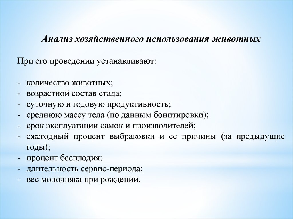 Анализ хозяйственного использования животныхПри его проведении устанавливают: