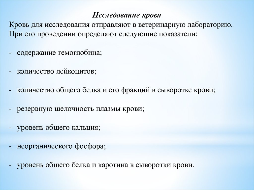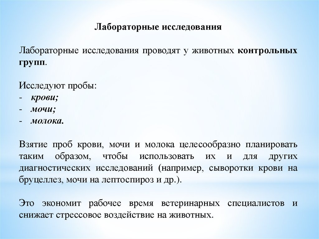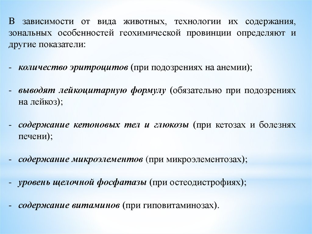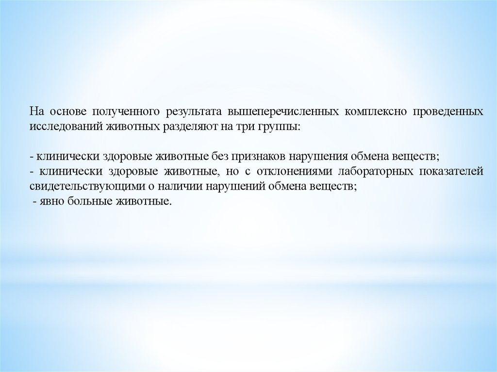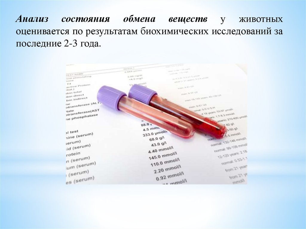 содержания животных, анализа состояния обмена веществ, синдроматики