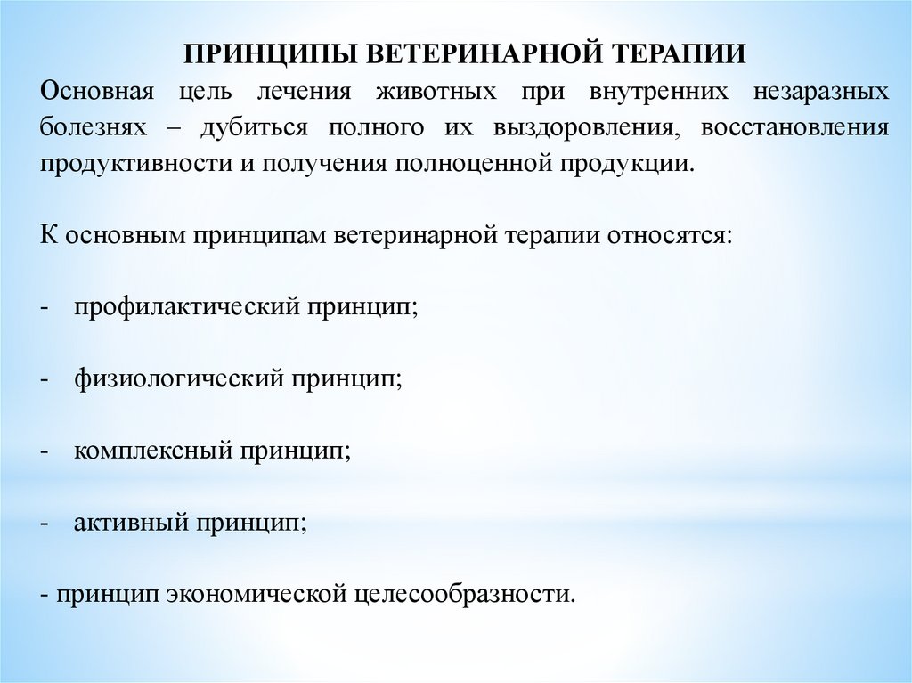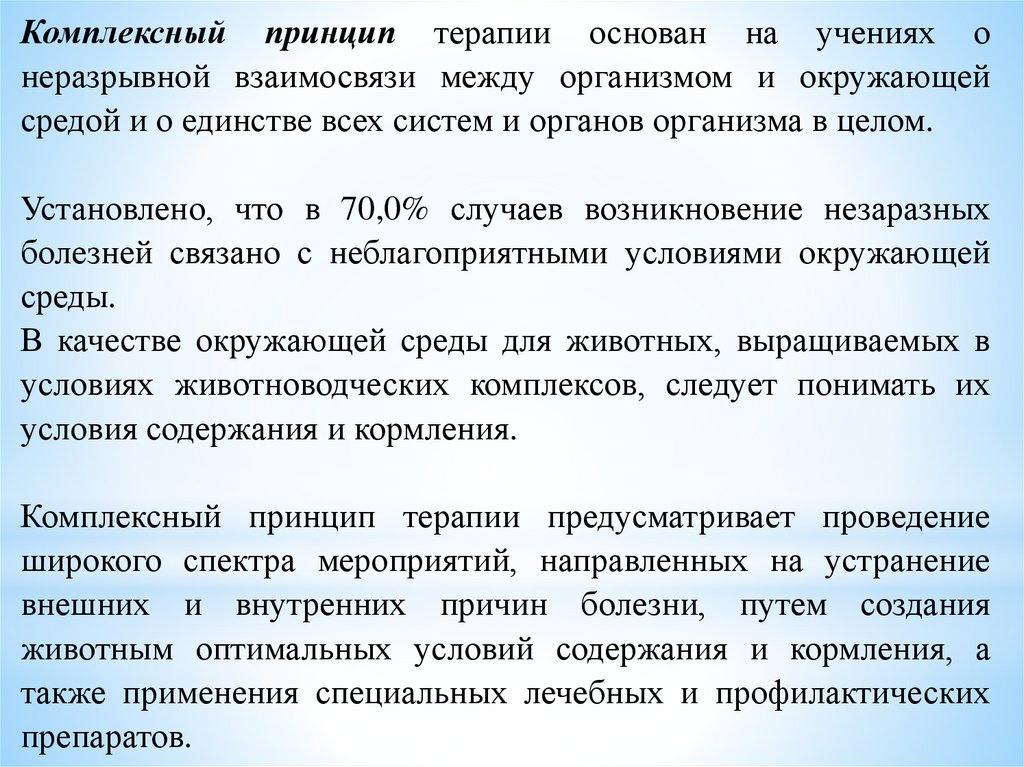 Успех лечения внутренних незаразных болезнейнапрямую зависит от комплексного использования