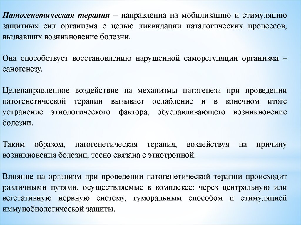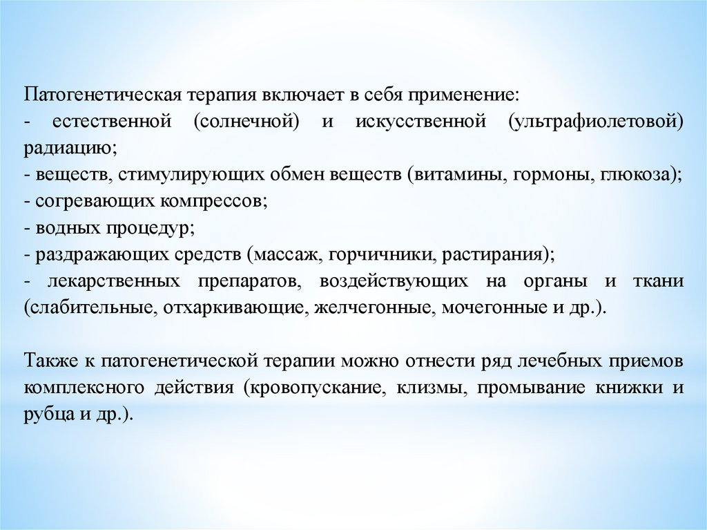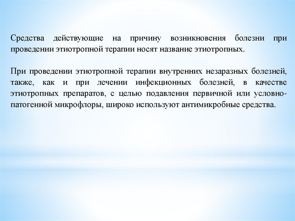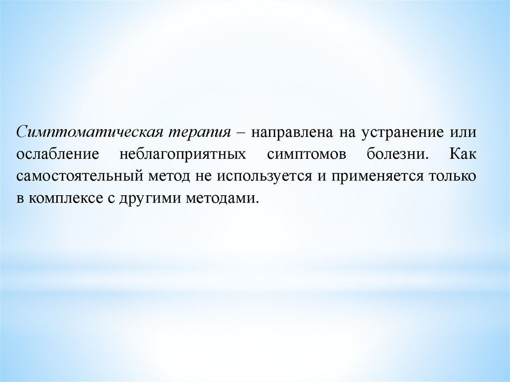 Симптоматическая терапия – направлена на устранение илиослабление неблагоприятных симптомов болезни. Как