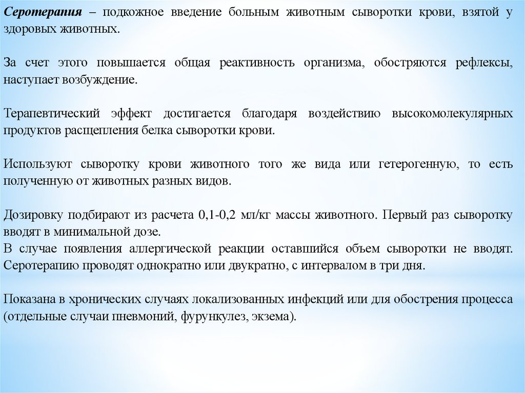 же вида), гетерогемотерапию (введение животном крови, полученной от
