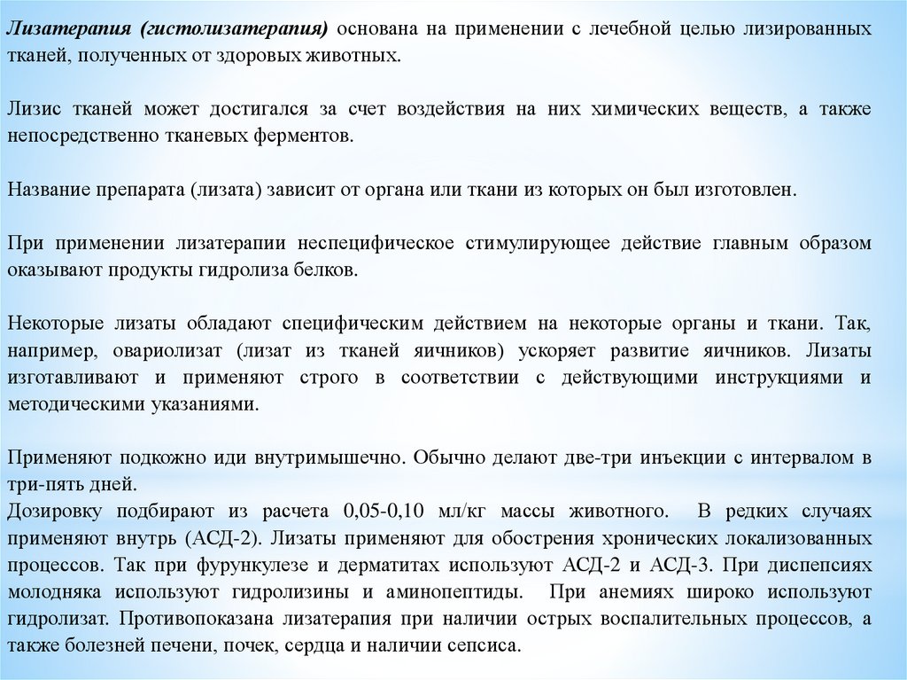 гидролизат. Противопоказана лизатерапия при наличии острых воспалительных процессов, а