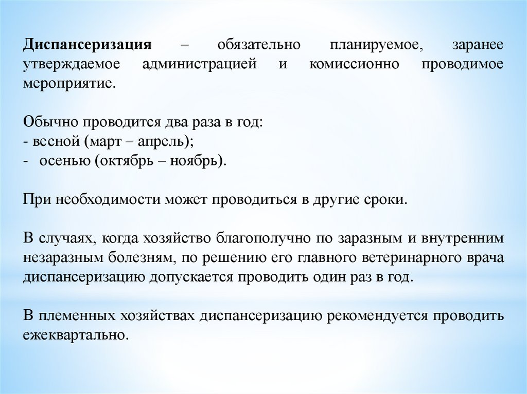 В племенных хозяйствах диспансеризацию рекомендуется проводить