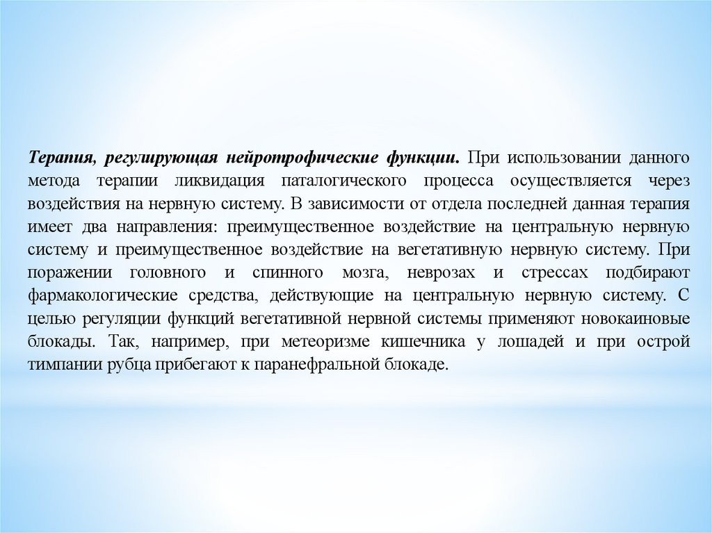 Терапия, регулирующая нейротрофические функции. При использовании данногометода терапии ликвидация паталогического процесса осуществляется через