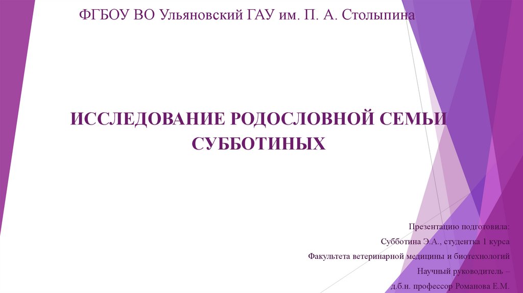 ИССЛЕДОВАНИЕ РОДОСЛОВНОЙ СЕМЬИСУББОТИНЫХ