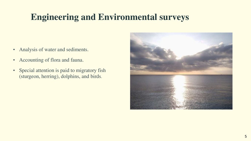 Engineering and Environmental surveys• Analysis of water and sediments.