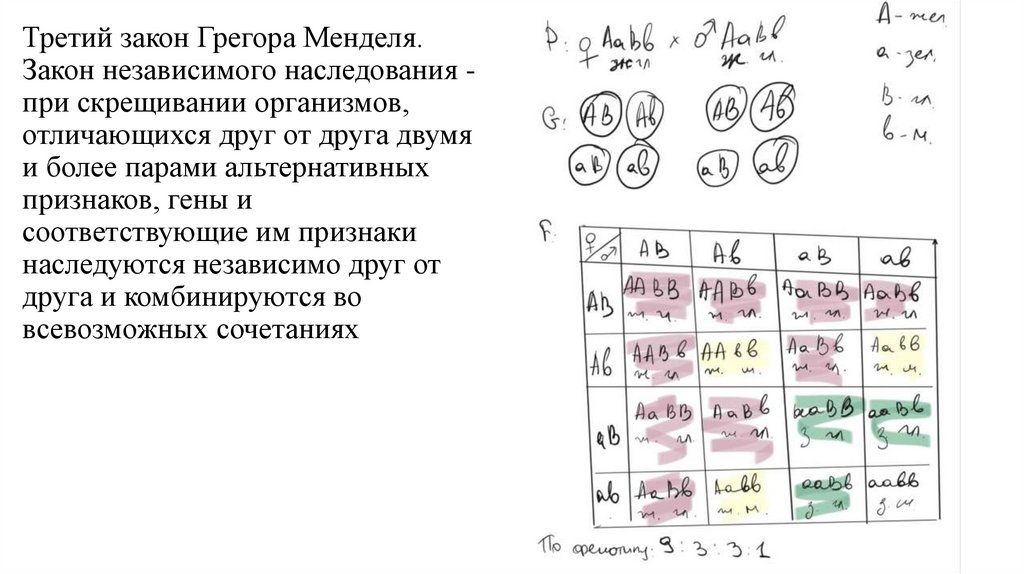 Третий закон Грегора Менделя.Закон независимого наследования при скрещивании организмов,