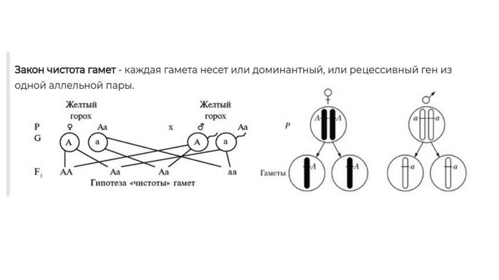 12. Первый закон Грегора Менделя. Закон единообразия - при скрещивании организмов, различающихся по одной паре альтернативных
