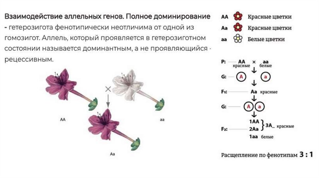 18. Взаимодействие аллельных генов. Неполное доминирование - гетерозигота несет в себе промежуточное проявление признака, отличное