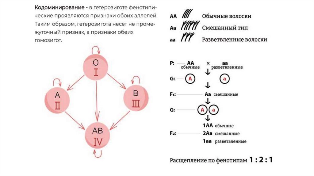 • Доминантный ген отвечает за развитие признака, который проявляется у гетерозиготного