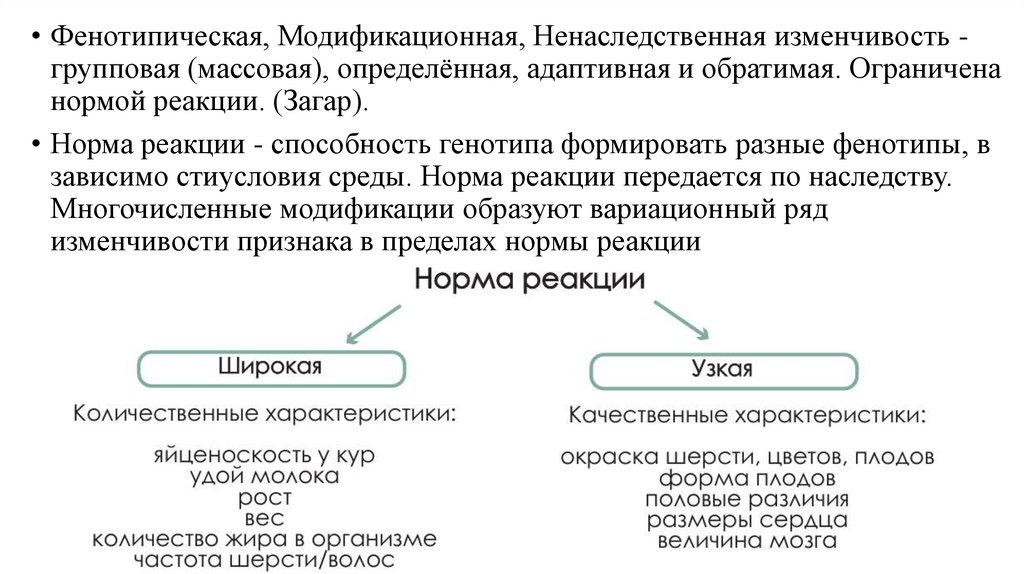 • Норма реакции - способность генотипа формировать разные фенотипы, в