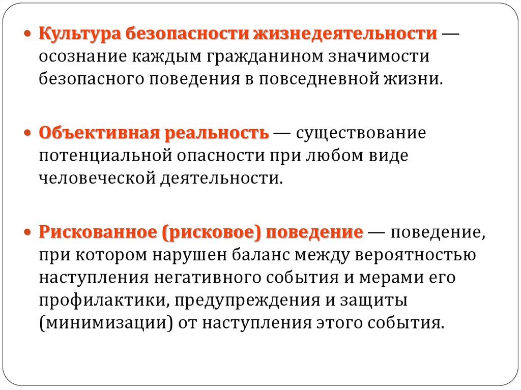 Культура безопасности жизнедеятельности —осознание каждым гражданином значимости