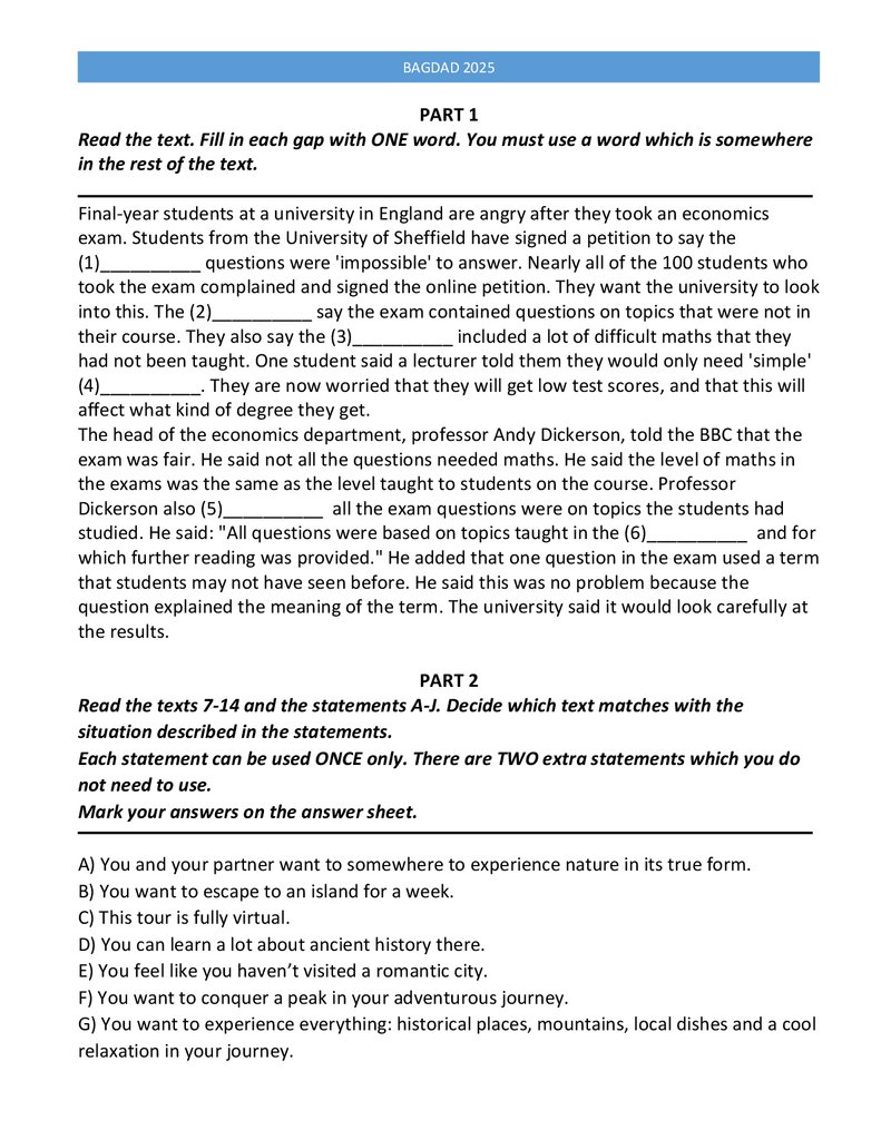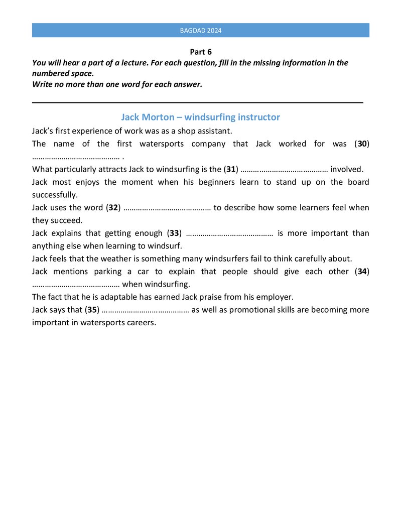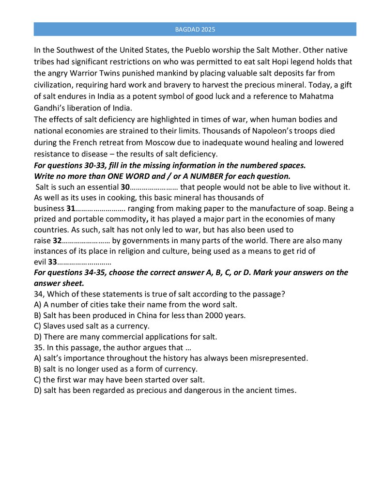 Write no more than ONE WORD and / or A NUMBER for each question.
