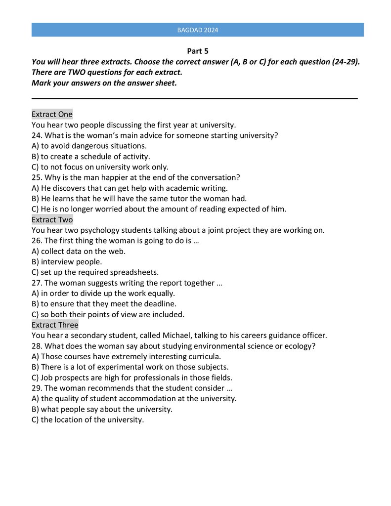 At the end of the Listening Paper, you will have to transfer your answers to the