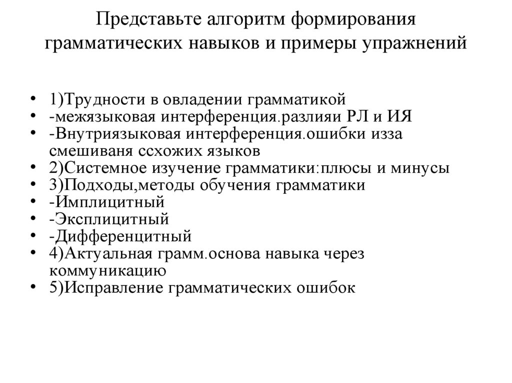 грамматические, лексические).