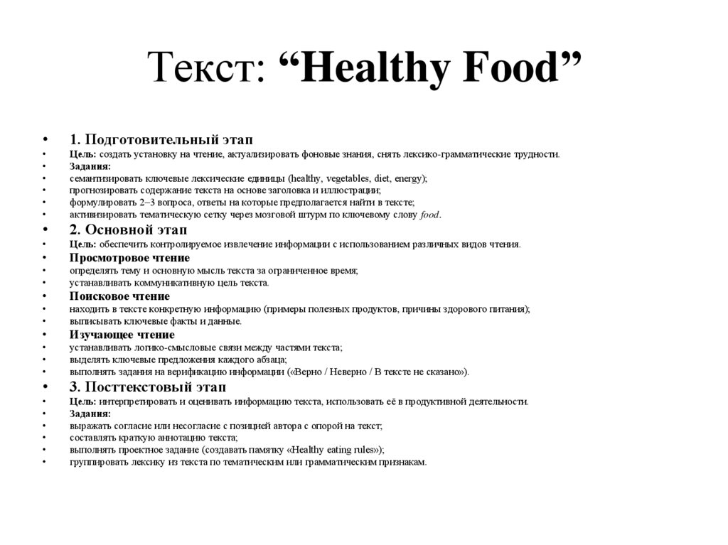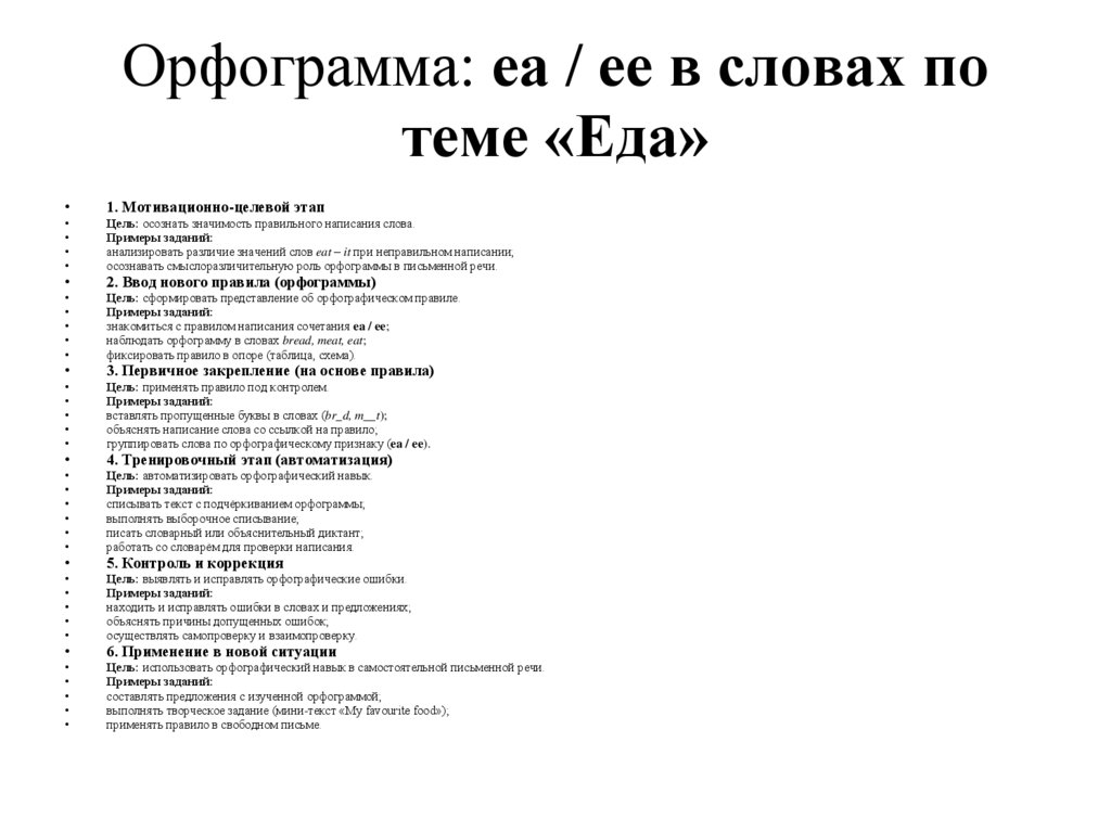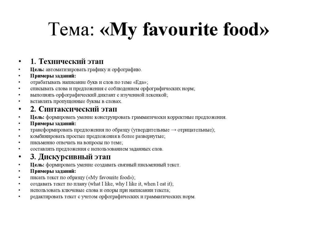 Пример (Уровень A2, тема «Еда»):
